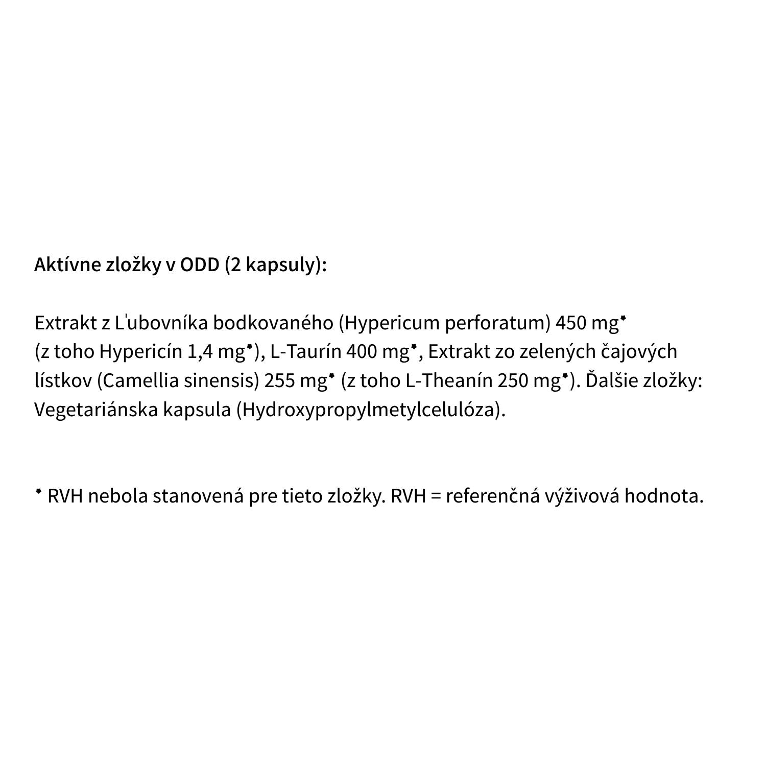 Aktívne látky: Extrakt z Ľubovníka bodkovaného, L-Taurín, L-Theanín - Extrakt zo zeleného čaju.